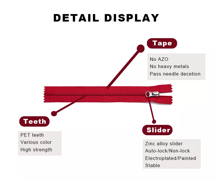 Las cremalleras de nailon estándar TRC están cuidadosamente elaboradas con poliéster de alta calidad y dientes de nailon de alta resistencia. Su diseño ligero pero robusto garantiza una apertura y cierre suaves, así como una excelente durabilidad. Entre las cremalleras más utilizadas, este producto ofrece una durabilidad excepcional y una sensación suave como la seda, lo que lo hace ideal para ropa, equipaje, ropa de cama y equipo para actividades al aire libre.